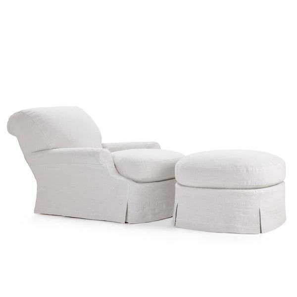 This relaxing tilted back armchair is designed to go together with its pouf, as if it was a longchair divided into two parts, therefore, allowing its use separately. The volume of its integrated backrest is due to the springs and duvel feathers which makes it extraordinarily comfortable.