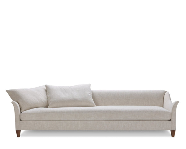 The "Removable" version means that the piece is completely upholstered with the Capri fabric except for the loose cushions, in the event that the chosen model has cushions. A custom cover will be made in the desired fabric and it will come already placed on the sofa. The legs or wheels are visible when this cover is removed.